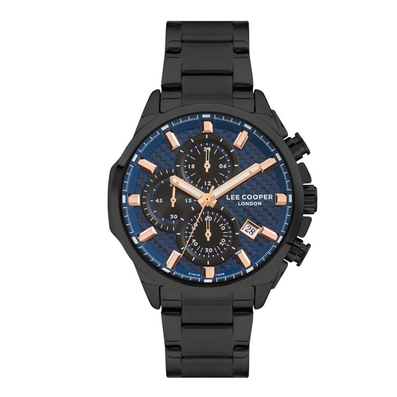 Спортно-елегантен мъжки часовник Lee Cooper с тъмносин мултифункционален дисплей. Моделът е с корпус от супер метал и черна метална верижка. Стъкло минерал-кристал. Задвижва се от кварцов механизъм. Водоустойчивост 3 ATM - допускат се леки пръски, не се препоръчва обилно мокрене.