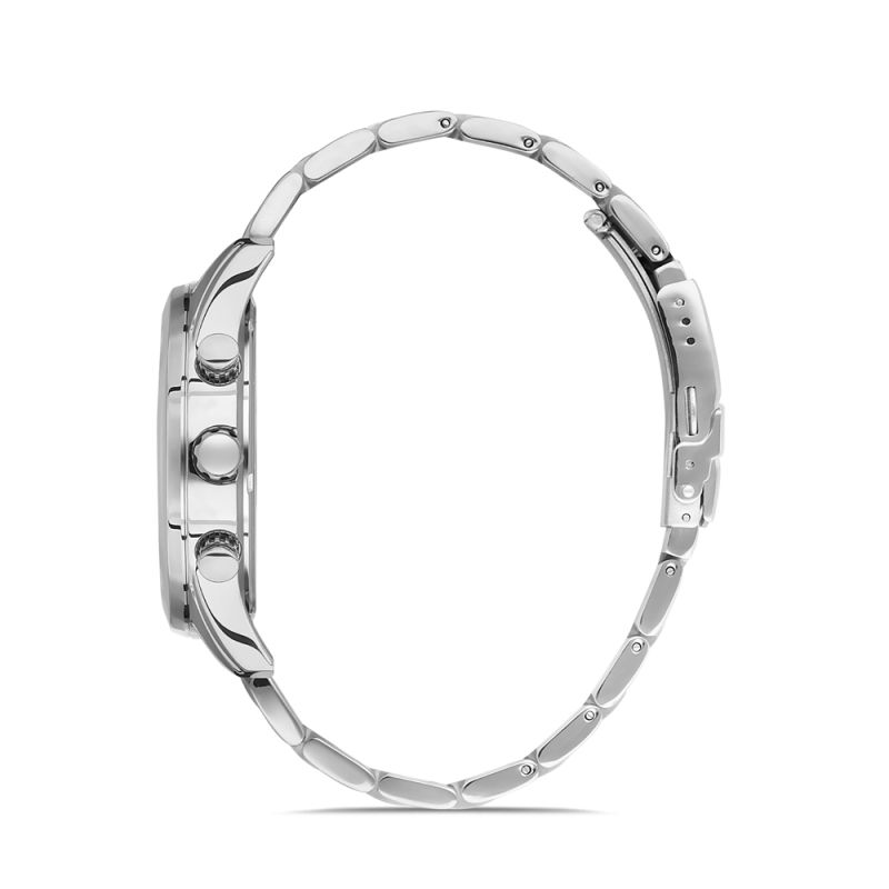 Мъжки часовник с модерен спортно-елегантен дизайн. Дисплей тип хронограф в черен цвят със сребристи детайли. Луминисцентно покритие върху стрелките и индексите. Стъкло минерал-кристал. Корпус и верижка изработени от неръждаема стомана. Моделът се задвижва от кварцов механизъм. Водоустойчивост 5 ATM - допускат се леки пръски и взимане на душ, не се препоръчва обилно мокрене.