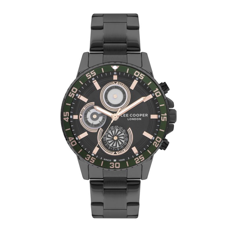 Спортно-елегантен мъжки часовник Lee Cooper с корпус от супер метал. Моделът е с мултифункционален дисплей  и минерално стъкло. Метална верижка. Задвижва се от кварцов механизъм. Водоустойчивост 5 ATM - допускат се леки пръски и взимане на душ, не се препоръчва обилно мокрене.