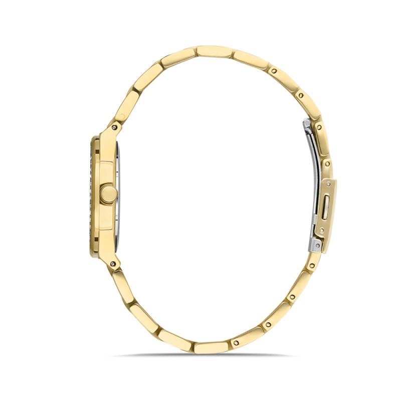 Елегантен дамски часовник от колекцията Unique. Декорация от нежни кристали по безела и циферблата. Моделът е с аналогов дисплей и минерално стъкло. Корпус и верижка изработени от неръждаема стомана. Задвижва се от кварцов механизъм. Водоустойчивост 5 ATM - допускат се леки пръски и взимане на душ, не се препоръчва обилно мокрене.