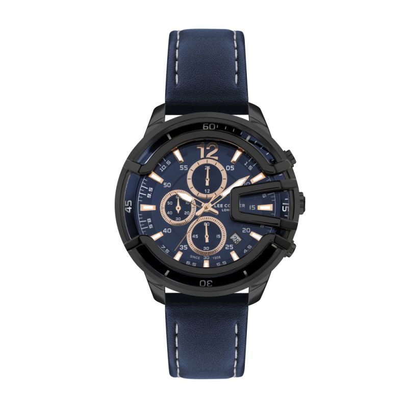 Спортно-елегантен мъжки часовник Lee Cooper с дисплей хронограф. Моделът е с корпус от супер метал и стъкло минерал-кристал. Тъмносиня каишка от естествена кожа. Задвижва се от кварцов механизъм. Водоустойчивост 5 ATM - допускат се леки пръски и взимане на душ, не се препоръчва обилно мокрене.