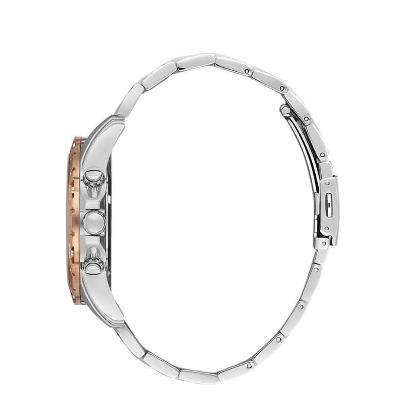 Мъжки часовник със спортно-ежедневен дизайн от серията Legend. Сребрист мултифункционален дисплей с детайли в цвят розово злато. Стъкло минерал-кристал. Корпус и верижка от стомана. Кварцов механизъм. Водоустойчивост 5 ATM - допускат се леки пръски и взимане на душ, не се препоръчва обилно мокрене.