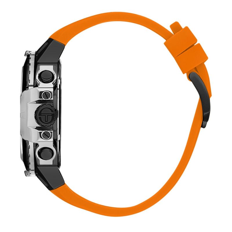 Впечатляващ модел мъжки часовник Sergio Tacchini с мултифункционален дисплей. Корпус изработен от неръждаема стомана. Силиконова каишка. Стъкло минерал-кристал. Задвижва се от кварцов механизъм. Водоустойчивост 10 ATM - позволява мокрене, къпане и плуване във водни басейни.