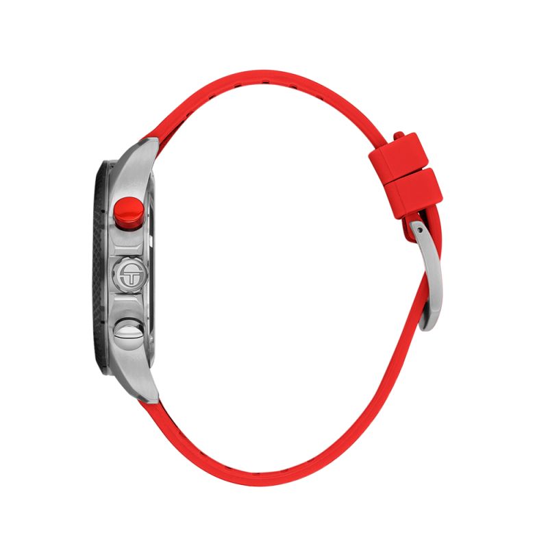 Стилен мъжки часовник Sergio Tacchini с мултифункционален дисплей. Моделът е с корпус изработен от неръждаема стомана и каишка от естествена кожа. Стъклото е минерал-кристал. Задвижва се от кварцов механизъм. Водоустойчивост 5 ATM - допускат се леки пръски и взимане на душ, не се препоръчва обилно мокрене.