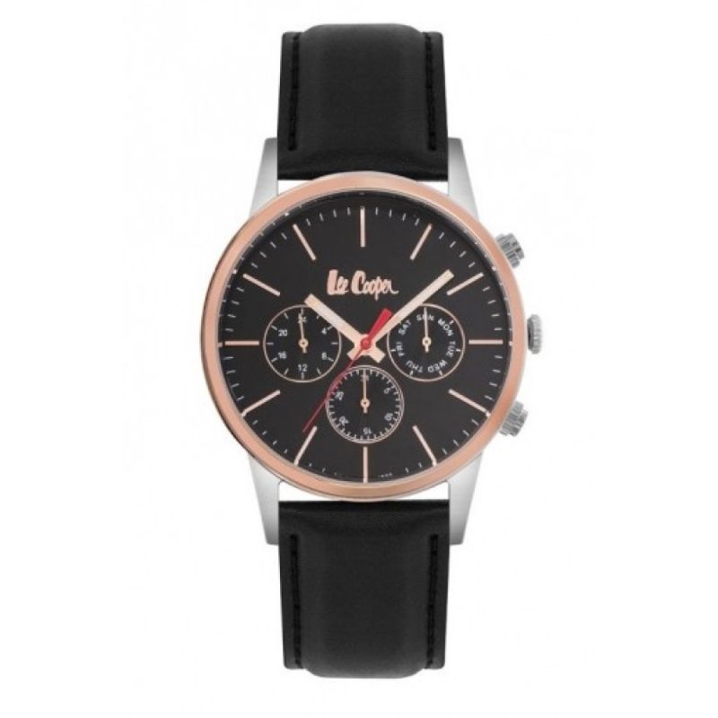 Мъжки часовник Lee Cooper с модерна и елегантна визия. Моделът е с мултифункционален дисплей. Корпус от супер метал. Черна каишка от естествена кожа. Стъкло минерал-кристал. Задвижва се от кварцов механизъм. Водоустойчивост 3 ATM - допускат се леки пръски, не се препоръчва обилно мокрене.