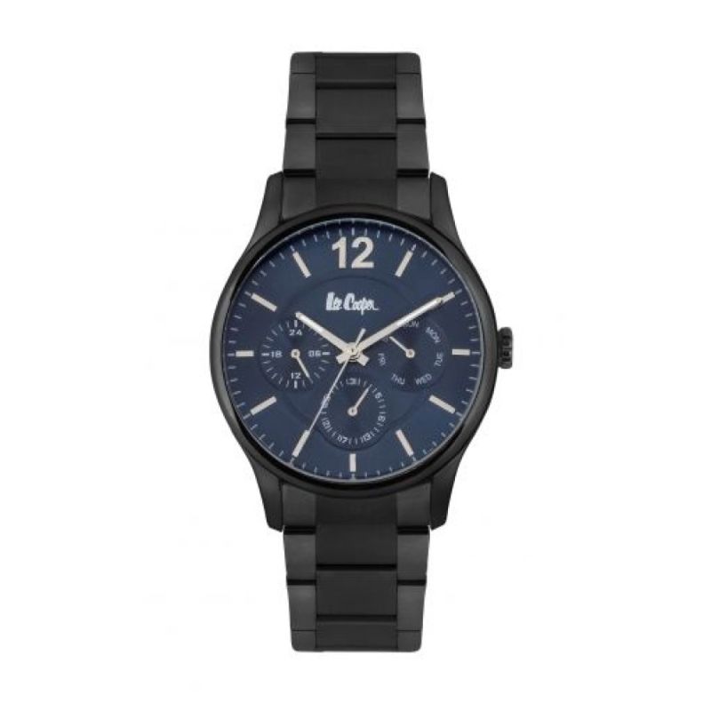 Мъжки часовник Lee Cooper с корпус от супер метал и верижка от неръждаема стомана. Стъкло минерал-кристал. Тъмносин мултифункционален дисплей. Задвижва се от кварцов механизъм. Водоустойчивост 3 ATM - допускат се леки пръски, не се препоръчва обилно мокрене.