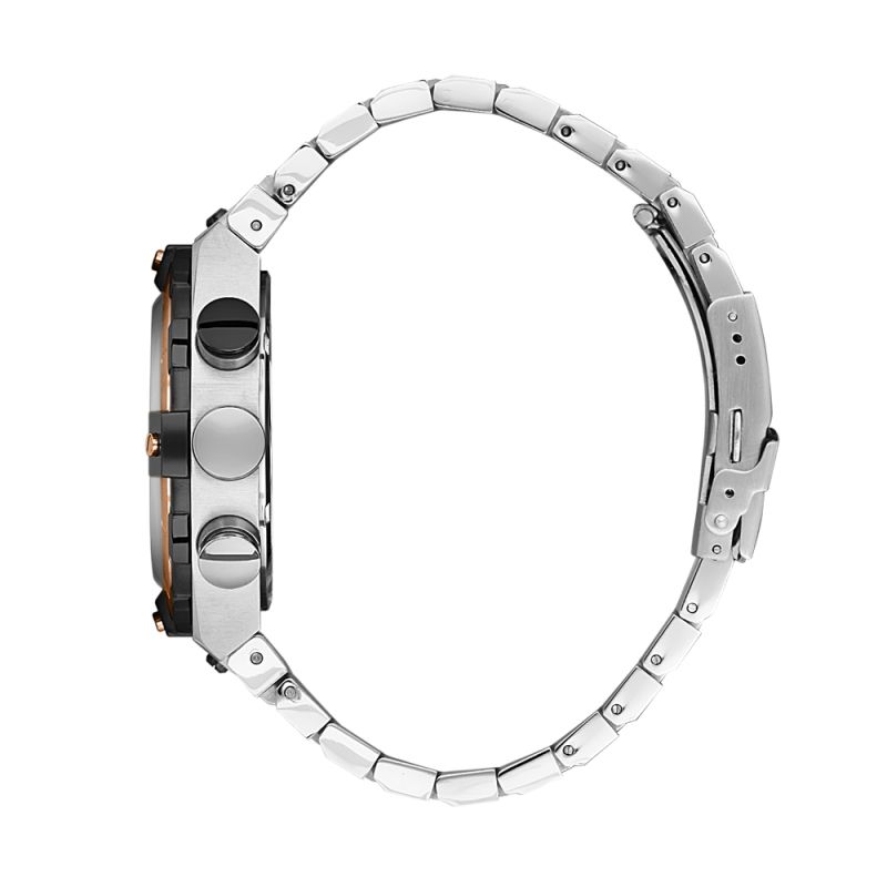 Спортно-елегантен мъжки часовник с мултифункционален дисплей от колекцията Prive. Корпус и верижка от неръждаема стомана. Минерално стъкло, устойчиво на надраскване. Задвижва се от кварцов механизъм. Водоустойчивост 5 ATM - допускат се леки пръски и взимане на душ, не се препоръчва обилно мокрене.
