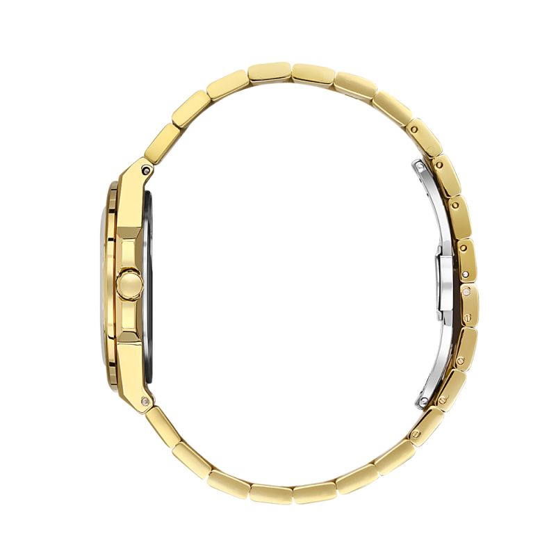 Елегантен дамски часовник от колекцията Luxury. Черен аналогов дисплей със стилен дизайн. Красива декорация от нежни кристали по ринга. Стъкло минерал-кристал. Метален корпус в комбинация с верижка от неръждаема стомана. Задвижва се от кварцов механизъм. Водоустойчивост 5 ATM - допускат се леки пръски и взимане на душ, не се препоръчва обилно мокрене.