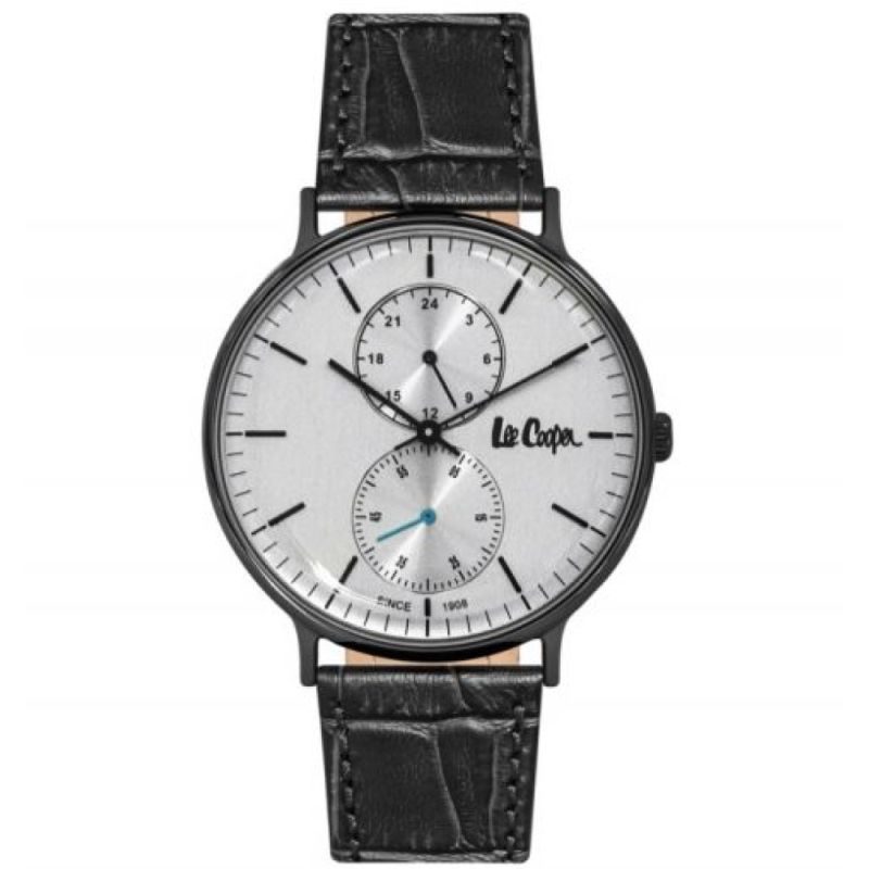 Елегантен модел мъжки часовник Lee Cooper с каишка от естествена кожа. Корпус от супер метал и стъкло минерал-кристал. Аналогов дисплей. Задвижва се от кварцов механизъм. Водоустойчивост 3 ATM - допускат се леки пръски, не се препоръчва обилно мокрене.