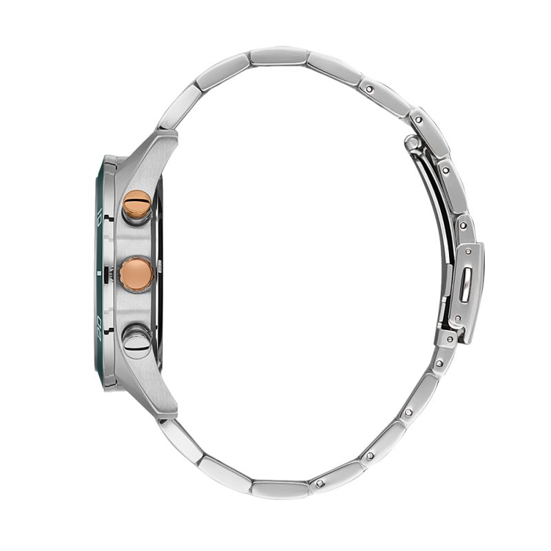 Спортно-елегантен мъжки часовник от колекцията Legend. Моделът е с корпус и верижка от неръждаема стомана. Зелен мултифункционален дисплей с показатели за двойно време, ден и дата. Минерално стъкло, устойчиво на надраскване. Задвижва се от кварцов механизъм. Водоустойчивост 5 ATM - допускат се леки пръски и взимане на душ, не се препоръчва обилно мокрене.