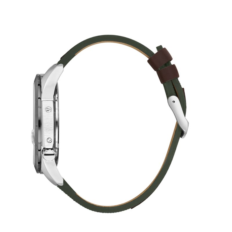 Спортно-елегантен мъжки часовник Daniel Klein от колекцията Premium. Корпус изработен от висококачествена метална сплав. Каишка в комбинация от естествена кожа и текстил. Тъмнозелен аналогов дисплей с показател за дата. Луминисцентно покритие на стрелките и индексите. Стъкло минерал-кристал. Задвижва се от кварцов механизъм. Водоустойчивост 5 ATM - допускат се леки пръски и взимане на душ, не се препоръчва обилно мокрене.