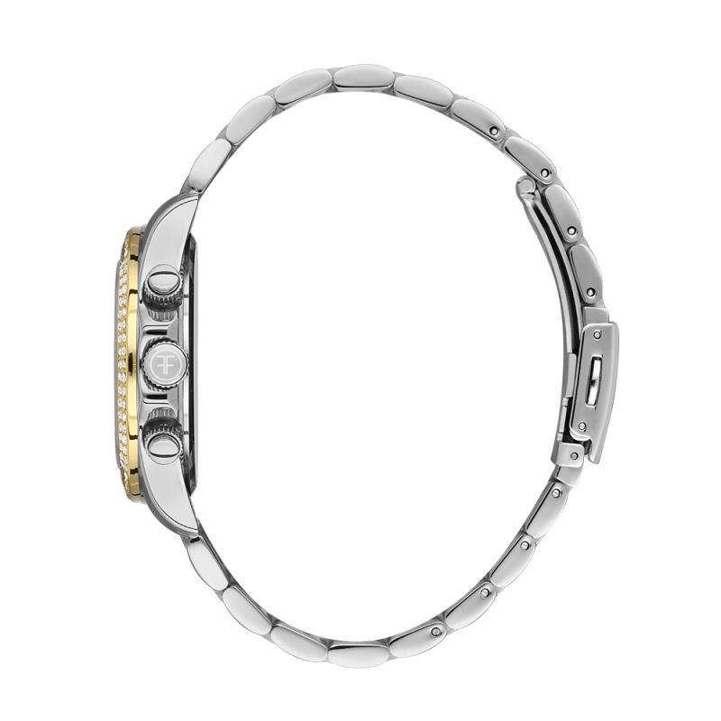 Дамски часовник Freelook от колекцията Charmant. Моделът е със седефен мултифункционален дисплей и богата декорация от нежни кристали. Стъкло минерал-кристал. Метален корпус в комбинация с верижка от неръждаема стомана. Задвижва се от кварцов механизъм. Водоустойчивост 5 ATM - допускат се леки пръски и взимане на душ, не се препоръчва обилно мокрене.