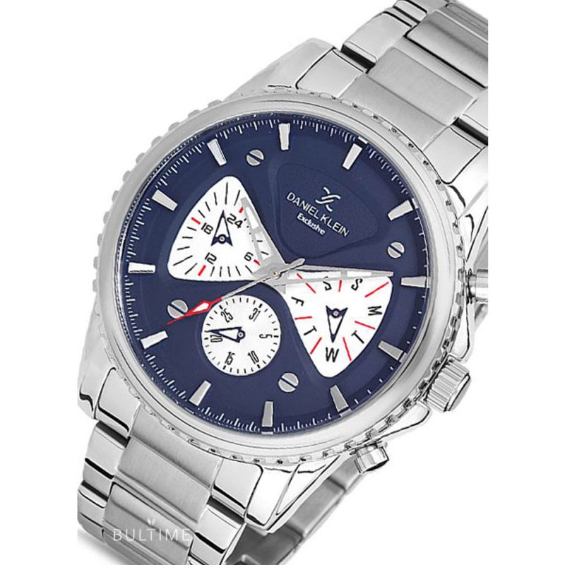 Мъжки часовник Daniel Klein с мултифункционален дисплей от колекцията Exclusive. Корпус изработен от висококачествена метална сплав. Верижка от неръждаема стомана. Стъкло минерал-кристал. Задвижва се от кварцов механизъм. Водоустойчивост 5 ATM - допускат се леки пръски и взимане на душ, не се препоръчва обилно мокрене.
