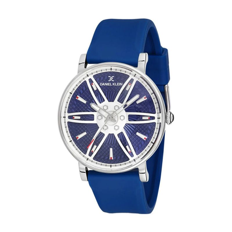 Мъжки часовник Daniel Klein от колекцията Premium. Аналогов дисплей с интересен дизайн с 3D детайли. Стъкло минерал-кристал. Корпус изработен от висококачествена метална сплав. Синя силиконова каишка. Задвижва се от кварцов механизъм. Водоустойчивост 5 ATM - допускат се леки пръски и взимане на душ, не се препоръчва обилно мокрене.