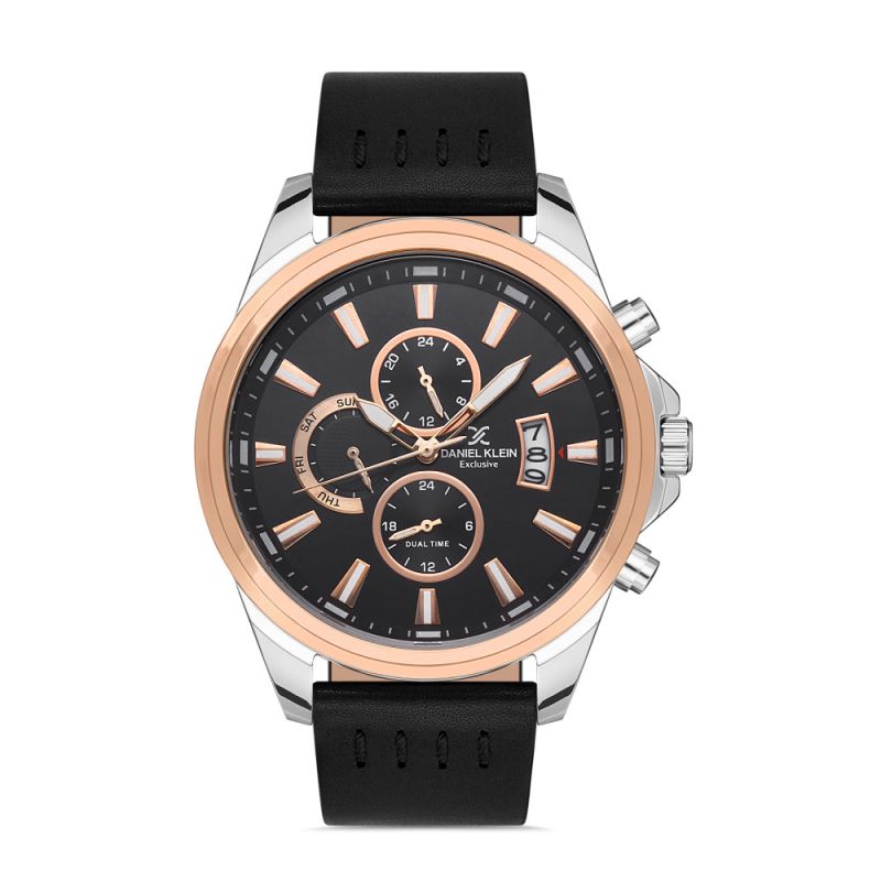 Елегантен мъжки часовник Daniel Klein от колекцията Exclusive. Метален корпус в комбинация с каишка от естествена кожа. Стилен мултифункционален дисплей с луминисцентно покритие на стрелките и индексите. Минерално стъкло, устойчиво на надраскване. Задвижва се от кварцов механизъм. Водоустойчивост 5 ATM - допускат се леки пръски и взимане на душ, не се препоръчва обилно мокрене.