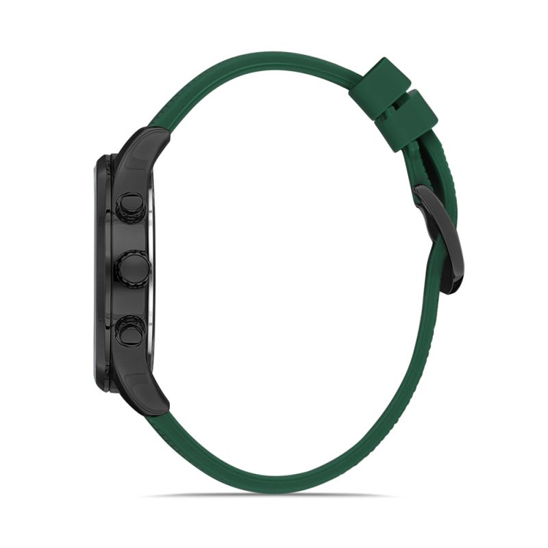 Спортен модел мъжки часовник Daniel Klein от колекцията Exclusive. Корпус от метал. Тъмнозелена силиконова каишка. Мултифункционален дисплей с показатели за дата, ден от седмицата и двойно време. Стъкло минерал-кристал. Кварцов механизъм. Водоустойчивост 5 ATM - допускат се леки пръски и взимане на душ, не се препоръчва обилно мокрене.