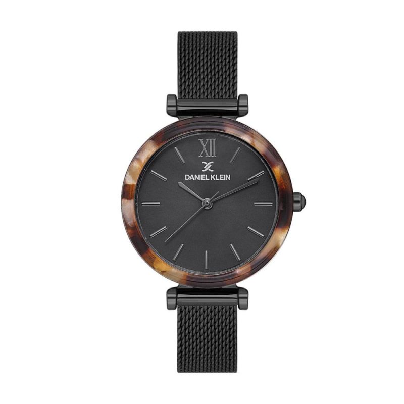 Дамски часовник Daniel Klein с черен аналогов дисплей от колекцията Premium. Стъкло минерал-кристал. Метален корпус, съчетан с верижка от неръждаема стомана. Кварцов механизъм. Водоустойчивост 3 ATM - допускат се леки пръски, не се препоръчва обилно мокрене.