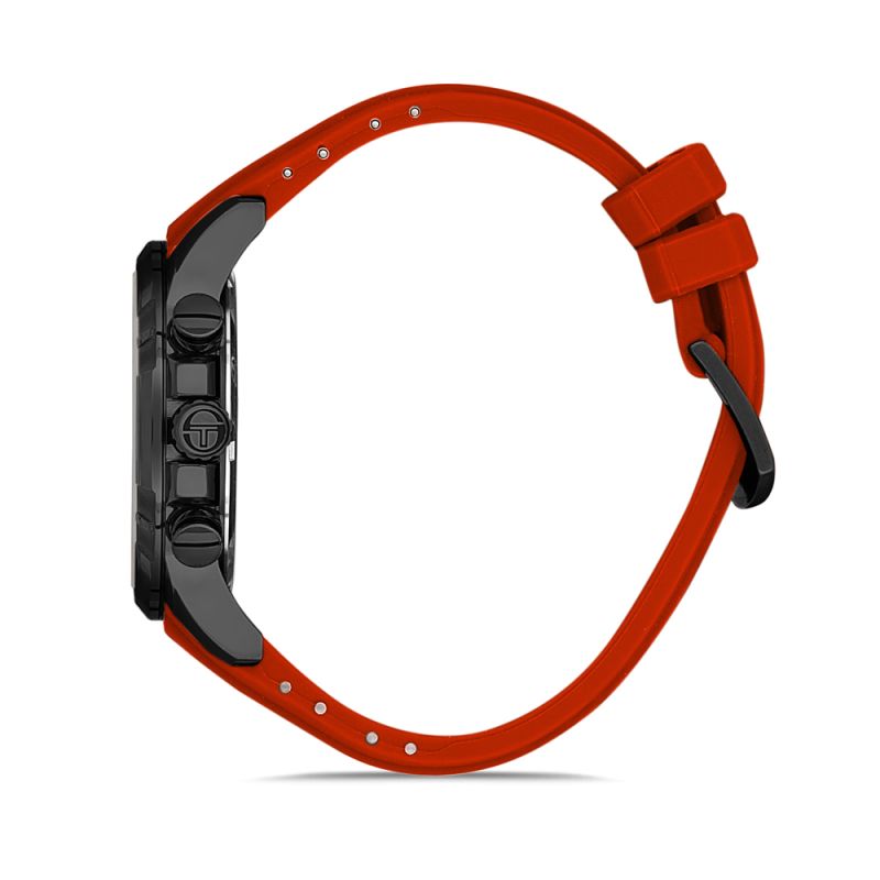 Мъжки часовник Sergio Tacchini със спортна и модерна визия от колекцията Archivio. Корпус изработен от неръждаема стомана. Червена силиконова каишка. Мултифункционален дисплей с минерално стъкло и показатели за дата, ден от седмицата и двойно време. Кварцов механизъм. Водоустойчивост 5 ATM - допускат се леки пръски и взимане на душ, не се препоръчва обилно мокрене.