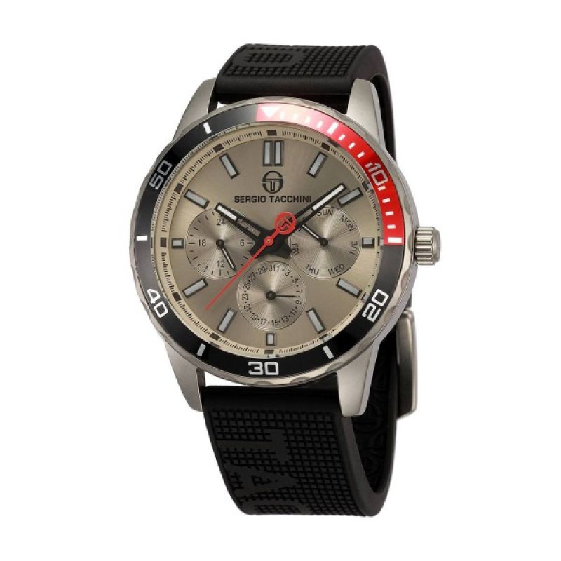 Спортен модел мъжки часовник Sergio Tacchini от колекцията Archivio. Корпус от неръждаема стомана. Мултифункционален дисплей, съчетан със силиконова каишка. Стъкло минерал-кристал. Задвижва се от кварцов механизъм. Водоустойчивост 5 ATM - допускат се леки пръски и взимане на душ, не се препоръчва обилно мокрене.
