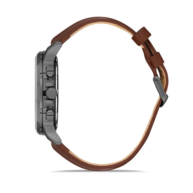 Класически модел мъжки часовник от колекцията Noble с модерна визия. Корпус изработен от неръждаема стомана. Кафява кожена каишка. Мултифункционален дисплей в тъмносив цвят с минерално стъкло, показател за дата, ден от седмицата и двойно време. Кварцов механизъм. Водоустойчивост 5 ATM - допускат се леки пръски и взимане на душ, не се препоръчва обилно мокрене.