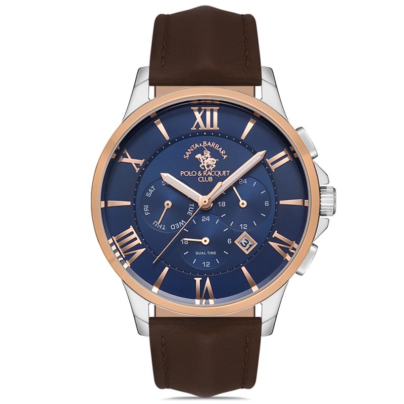 Мъжки часовник SANTA BARBARA POLO - RACQUET CLUB SB.1.10365-4 с каишка/верижка от Естествена кожа и Кварцов механизъм | Chronodeluxo.bg