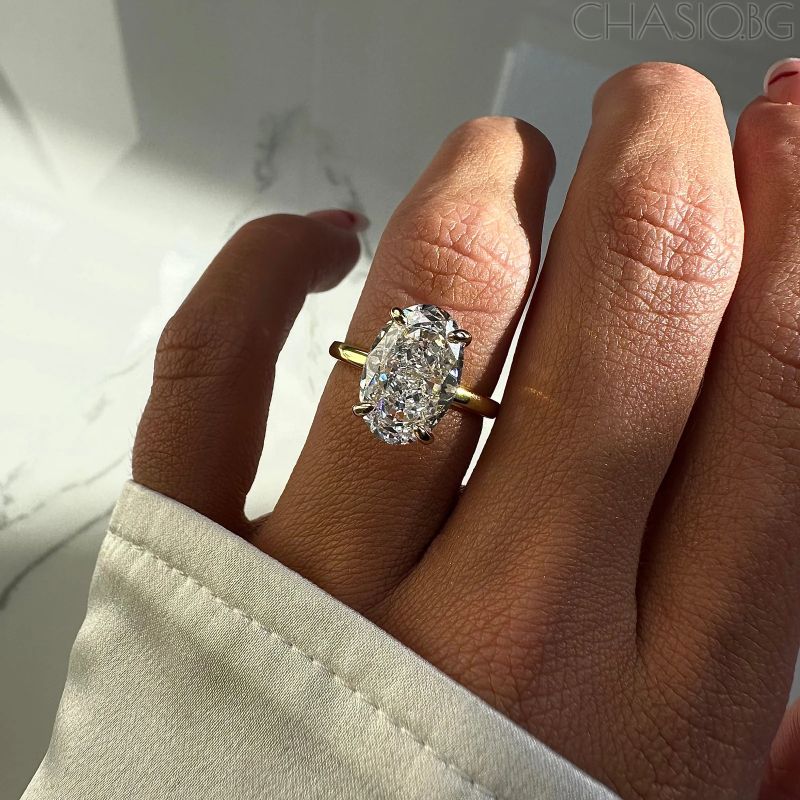 Моделът впечатлява с овален камък „Crushed Ice“, отличаващ се с фино изрязани фасети, които улавят и отразяват светлината дори при по-слаба осветеност. Балансираният размер на централния камък създава усещане за стилна умереност и подчертано качество.