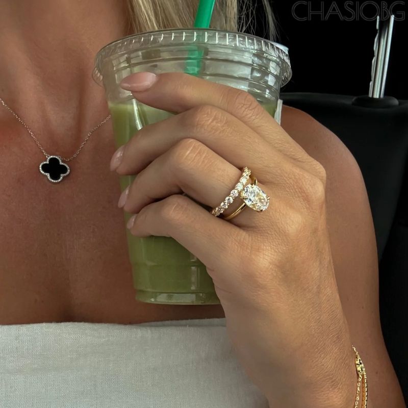 - Камък: висок клас 5A кубичен цирконий, шлифовка „Crushed Ice“