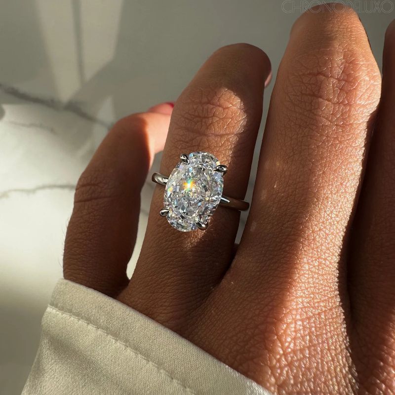 Моделът впечатлява с овален камък „Crushed Ice“, отличаващ се с фино изрязани фасети, които улавят и отразяват светлината дори при по-слаба осветеност. Балансираният размер на централния камък създава усещане за стилна умереност и подчертано качество.