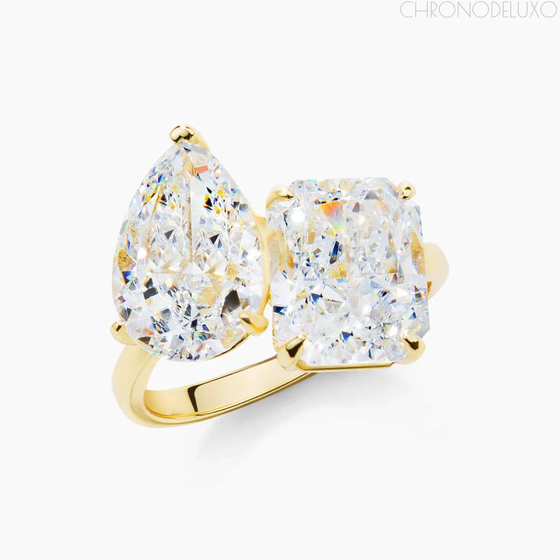 Комбинацията от крушовидна и радиантна форма придава динамика и характер, а прецизната „Crushed Ice“ шлифовка осигурява интензивен блясък от всеки ъгъл. Това е бижу за жени, които търсят нещо различно – по-смело, по-запомнящо се и категорично впечатляващо.