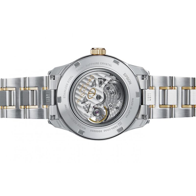 Спортно-елегантен мъжки часовник от колекцията Contemporary. Моделът е с автоматичен механизъм Orient F6R42. Корпус и верижка изработени от неръждаема стомана. Стъкло сапфир-кристал. Аналогов дисплей с видим баланс и златисти стрелки, индекси и римски цифри. Водоустойчивост 10 ATM - позволява мокрене, къпане и плуване във водни басейни.