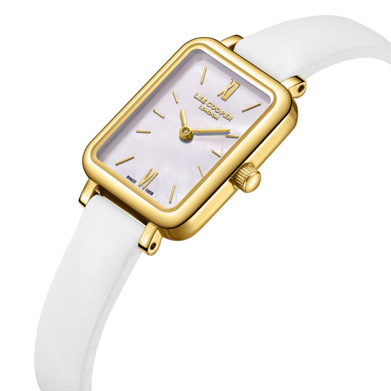 Класически модел часовник Lee Cooper със стилен дизайн. Корпус изработен от супер метал. Каишка от естествена кожа. Аналогов дисплей в нежен седефен цвят със златисти детайли. Стъкло минерал-кристал. Задвижва се от кварцов механизъм. Водоустойчивост 3 ATM - допускат се леки пръски, не се препоръчва обилно мокрене.