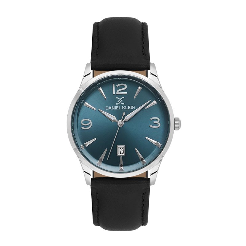 Мъжки часовник Daniel Klein със стилен дизайн от колекцията Premium. Аналогов дисплей в син цвят със сребристи детайли и показател за дата. Метален корпус. Каишка от естествена кожа в черен цвят. Диаметър на корпуса 48 мм. Стъкло минерал-кристал. Задвижва се от кварцов механизъм VX42E12W. Водоустойчивост 5 ATM - допускат се леки пръски и взимане на душ, не се препоръчва обилно мокрене.