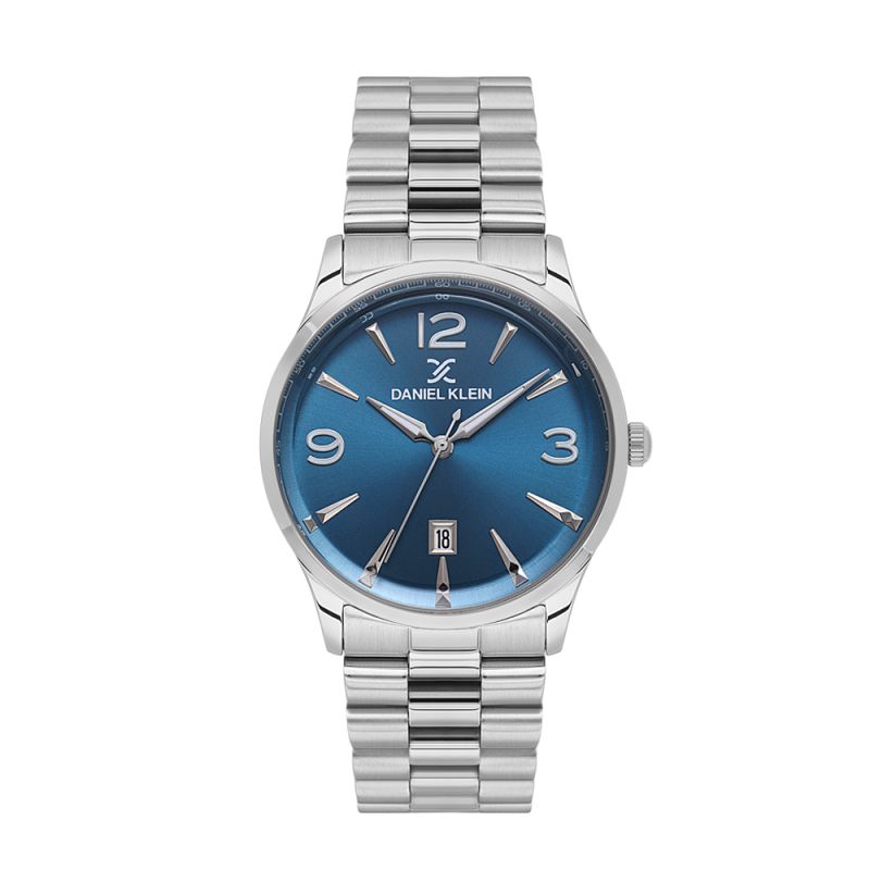 Мъжки часовник Daniel Klein с класически дизайн от колекцията Premium. Тъмносин аналогов дисплей с показател за дата и сребристи детайли. Метален корпус в комбинация с верижка от неръждаема стомана. Диаметър на корпуса 48 мм. Стъкло минерал-кристал. Задвижва се от кварцов механизъм VX42E12W. Водоустойчивост 5 ATM - допускат се леки пръски и взимане на душ, не се препоръчва обилно мокрене.