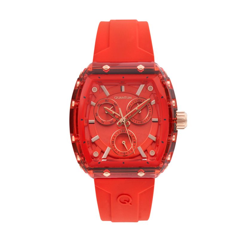 Дамски часовник Quantum с модерна спортна визия. Мултифункционален дисплей с показатели за дата, ден от седмицата и 24-часов формат. Стъкло минерал-кристал. Моделът е с корпус от полимер и силиконова каишка. Часовникът се задвижва от кварцов механизъм. Водоустойчивост 5 ATM - допускат се леки пръски и взимане на душ, не се препоръчва обилно мокрене.
