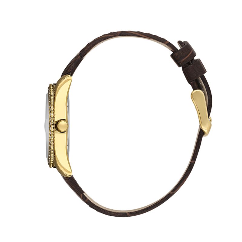 Стилен дамски часовник Daniel Klein с красив дизайн от колекцията Premium. Сребрист аналогов дисплей с показател за дата. Декорация от нежни кристали по безела. Метален корпус. Диаметър на корпуса 37.5 мм. Кафява каишка от естествена кожа. Стъкло минерал-кристал. Задвижва се от кварцов механизъм VX12E11. Водоустойчивост 3 ATM - допускат се леки пръски, не се препоръчва обилно мокрене.