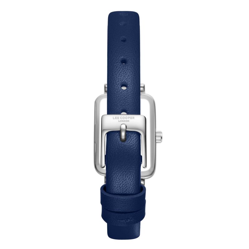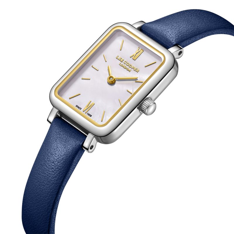 Класически модел часовник Lee Cooper със стилен дизайн. Корпус изработен от супер метал. Каишка от естествена кожа в тъмносин цвят. Аналогов дисплей в нежен седефен цвят със златисти детайли. Стъкло минерал-кристал. Задвижва се от кварцов механизъм. Водоустойчивост 3 ATM - допускат се леки пръски, не се препоръчва обилно мокрене.