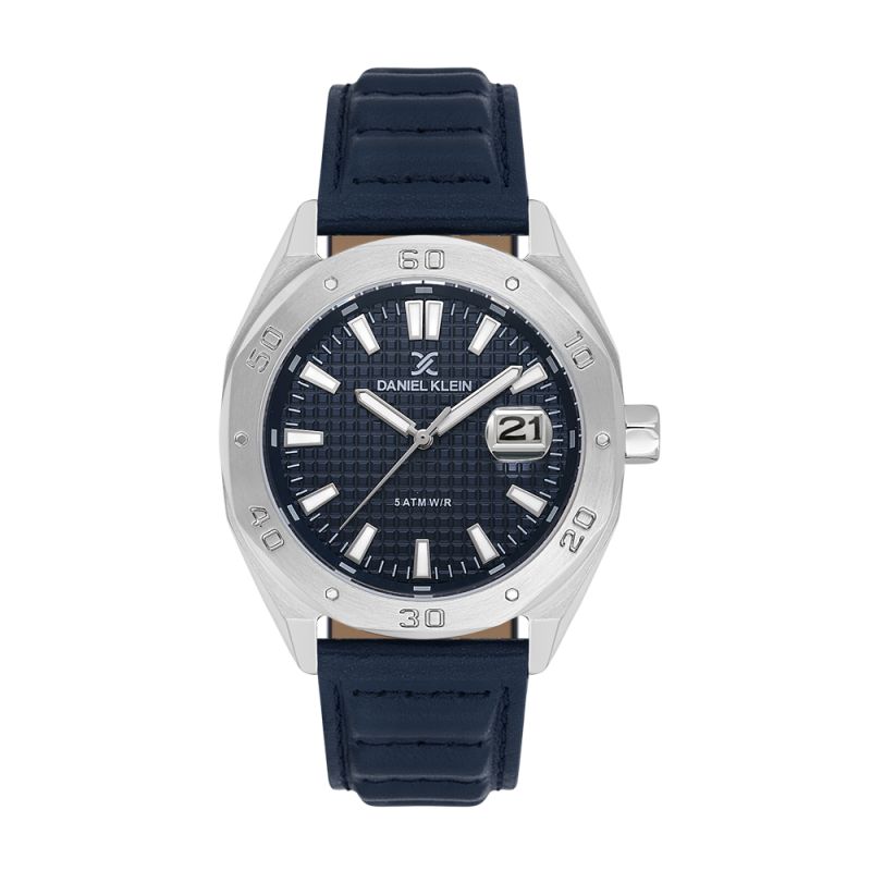 Спортен модел мъжки часовник Daniel Klein от колекцията Premium. Аналогов дисплей с показател за дата. Метален корпус в комбинация с каишка от естествена кожа. Диаметър на корпуса 51.5 мм. Стъкло минерал-кристал. Задвижва се от кварцов механизъм 2315-3. Водоустойчивост 5 ATM - допускат се леки пръски и взимане на душ, не се препоръчва обилно мокрене.