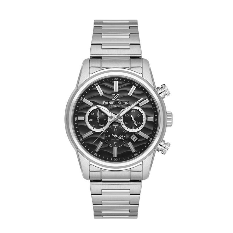 Мъжки часовник Daniel Klein със спортно-елегантен дизайн от колекцията Exclusive. Мултифункционален дисплей в черен цвят с интересна основа. Метален корпус. Диаметър на корпуса 51.5 мм. Сребриста верижка от неръждаема стомана. Стъкло минерал-кристал. Задвижва се от кварцов механизъм JP25-4.5. Водоустойчивост 5 ATM - допускат се леки пръски и взимане на душ, не се препоръчва обилно мокрене.