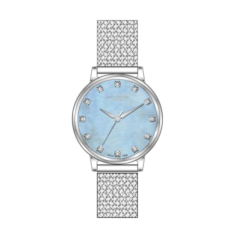 Нежен модел дамски часовник Lee Cooper. Корпусът е изработен от специална сплав - супер метал и е с минерално стъкло. Меш верижка в сребрист цвят. Аналогов дисплей в син цвят с декорация от инкрустирани кристали. Кварцов механизъм. Водоустойчивост 3 ATM - допускат се леки пръски, не се препоръчва обилно мокрене.