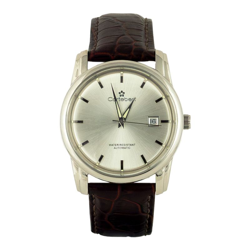 Мъжки часовник Cortebert със спортно-елегантен дизайн. Корпус изработен от неръждаема стомана. Кафява каишка от естествена кожа. Сребрист аналогов дисплей с показател за дата. Стъкло минерал-кристал. Задвижва се от автоматичен механизъм. Водоустойчивост 3 ATM - допускат се леки пръски, не се препоръчва обилно мокрене.