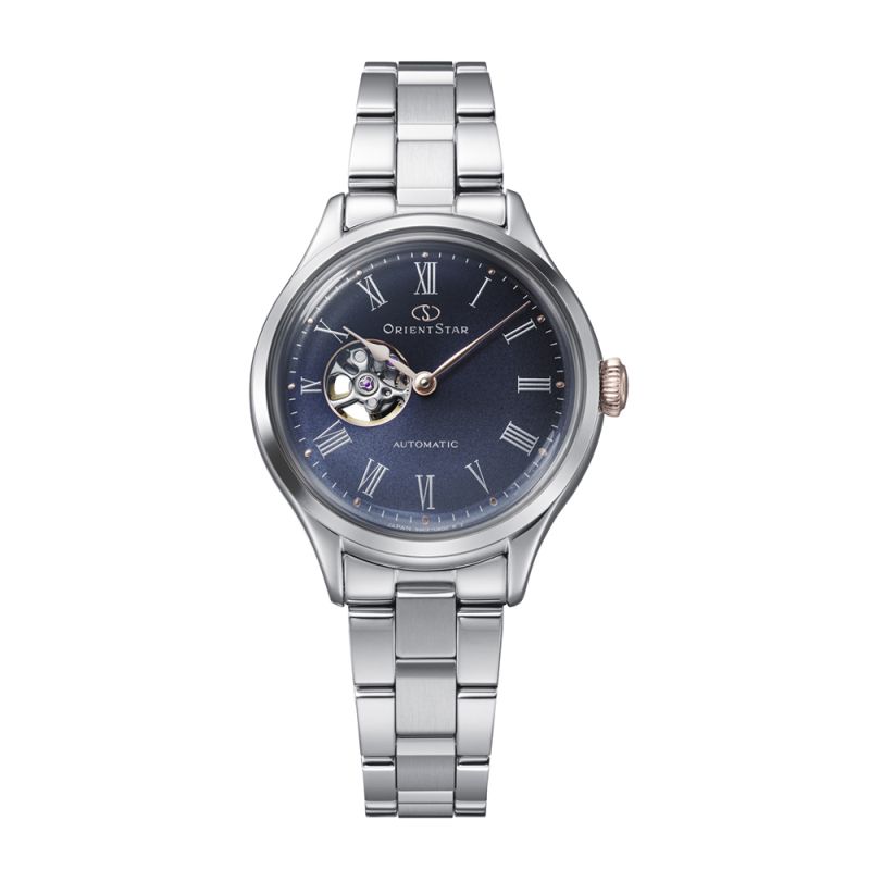Лимитиран модел дамски часовник Orient Star с класическа визия, част от серията Keshiki, което означава красива природа на японски език. Дизайнът е вдъхновен от цветовете на снежната светлина. Циферблатът се отличава с наситените сиво-сини нюанси, наподобяващи мекото сияние на снежна вечер, когато отражението на светлината нежно озарява тъмнината. Корпусът и верижката са изработени от неръждаема стомана. Дисплеят е аналогов с отвор, позволяващ да се наблюдава част от механизма. Стъклото е минерал-кристал. Задвижва се от автоматичен механизъм ( с възможност за ръчно навиване) Cal.55C22 с резервна мощност 40 часа. Диаметър на корпуса 30.5 мм. Водоустойчивост 5 ATM - допускат се леки пръски и взимане на душ, не се препоръчва обилно мокрене.