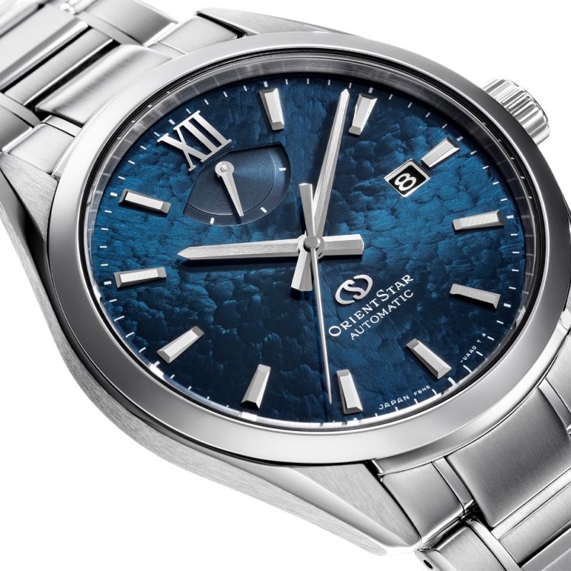 Мъжки часовник Orient Star от колекцията M-Collection /M34 F8/ Date. Моделът е с корпус и верижка от неръждаема стомана. Дисплеят е аналогов с индикатор за резервната мощност и показател за дата. Стъклото е сапфир-кристал с антрирефлексно покритие. Задвижва се от автоматичен механизъм F8N64 с резервна мощност 60 часа. През прозрачния гръб на корпуса може да се наблюдава механизма на часовника. Водоустойчивост 10 ATM - позволява мокрене, къпане и плуване във водни басейни.