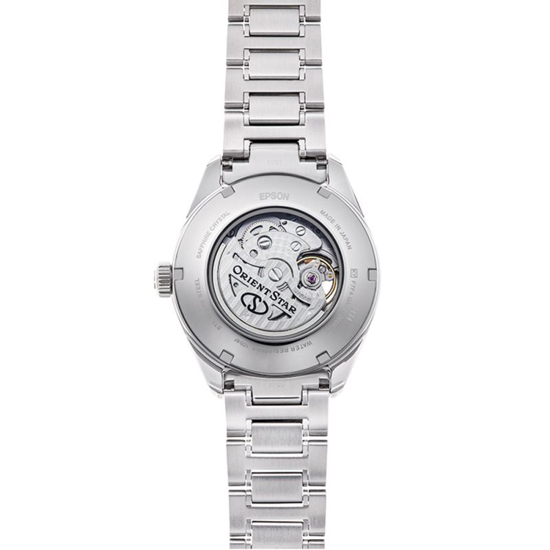 Класически модел мъжки часовник Orient Star с елегантен дизайн от колекцията M-Collection /M34 F7/ Semi Skeleton. Моделът е със седефен дисплей с отвор, позволяващ да се наблюдава част от механизма, индикатор за резервна мощност и отделен секундарник. Корпусът и верижката са изработени от неръждаема стомана. Стъклото е сапфир-кристал със супер антирефлексно покритие. Часовникът се задвижва от автоматичен механизъм F7F44 с 24 камъка и 50 часа резервна мощност. Водоустойчивост 10 ATM - позволява мокрене, къпане и плуване във водни басейни.