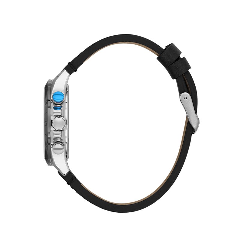 Стилен мъжки часовник Daniel Klein от колекцията Exclusive. Черна каишка от естствена кожа. Корпус изработен от метал. Диаметър на корпуса 42 мм. Мултифункционален дисплей с показатели за дата, ден от седмицата и двойно време. Стъкло минерал-кристал. Часовникът се задвижва от кварцов механизъм JP15-3. Водоустойчивост 5 ATM - допускат се леки пръски и взимане на душ, не се препоръчва обилно мокрене.