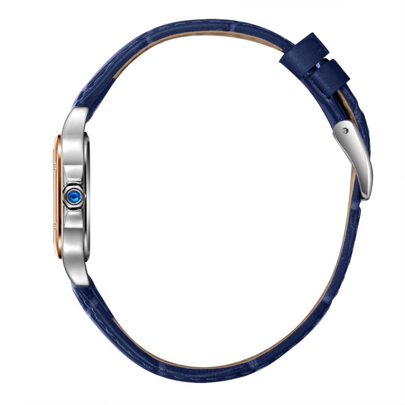 Класически модел дамски часовник Lee Cooper със стилен дизайн. Бял аналогов дисплей със сини стрелки и римски цифри в черен цвят. Стъкло минерал-кристал. Корпус изработен от супер метал - специална сплав, създадена от марката. Тъмносиня каишка от естествена кожа. Задвижва се от кварцов механизъм. Водоустойчивост 3 ATM - допускат се леки пръски, не се препоръчва обилно мокрене.
