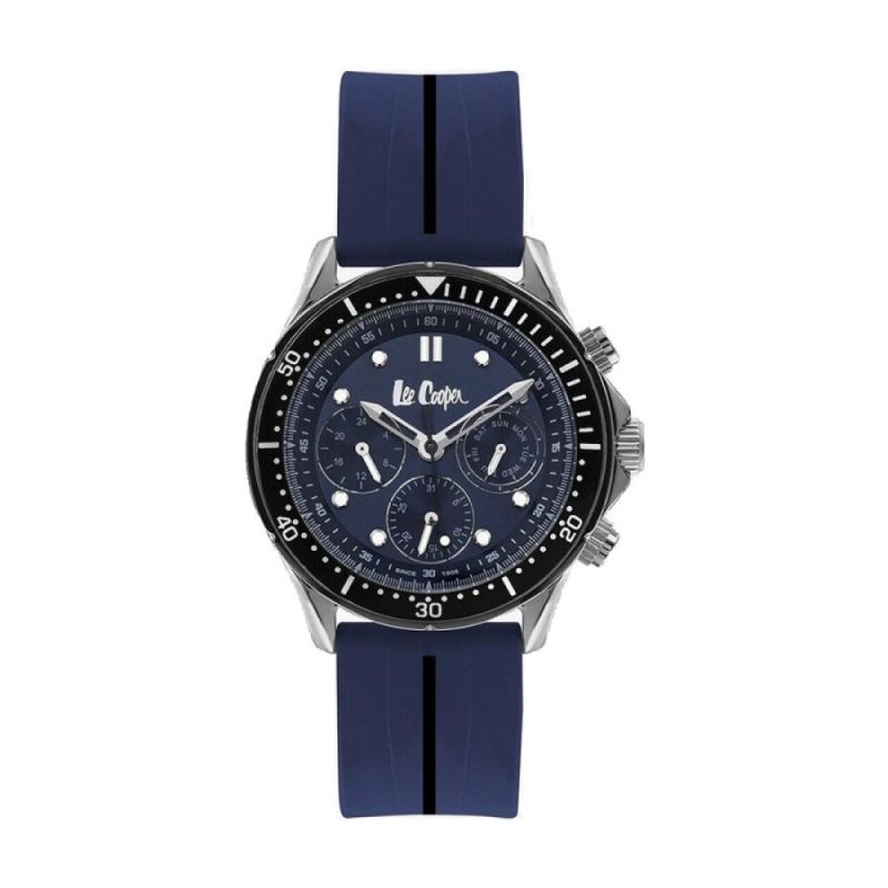 Мъжки часовник Lee Cooper със спортно-ежедневен дизайн от колекцията Classic Multifunction. Тъмносин мултифункционален дисплей. Стъкло минерал-кристал. Корпус изработен от супер метал - специална сплав, създадена от марката. Тъмносиня силиконова каишка. Диаметър на корпуса 44 мм. Задвижва се от кварцов механизъм. Водоустойчивост 5 ATM - допускат се леки пръски и взимане на душ, не се препоръчва обилно мокрене.