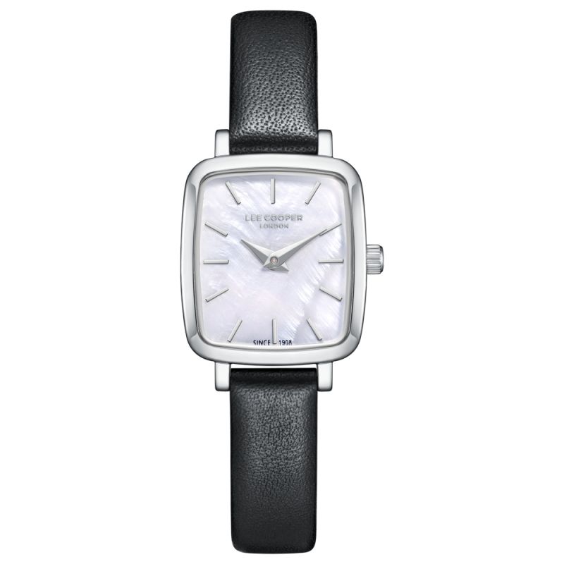 Стилен дамски часовник Lee Cooper с класически дизайн от колекцията Elegance. Аналогов дисплей в нежен седефен цвят със сребристи стрелки и индекси. Стъкло минерал-кристал. Корпус изработен от супер метал - специална сплав, създадена от марката. Черна каишка от естествена кожа. Задвижва се от кварцов механизъм. Водоустойчивост 3 ATM - допускат се леки пръски, не се препоръчва обилно мокрене.