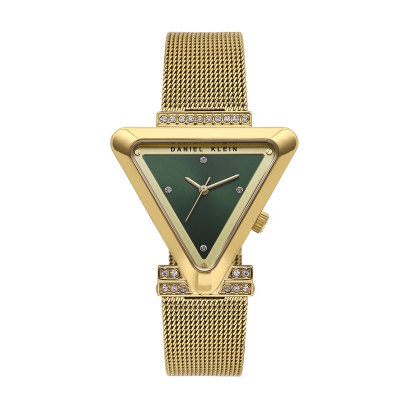 Впечатляващ дамски часовник Daniel Klein с елегантна визия от колекцията Premium. Моделът е с декорация от инкрустирани кристали от две страни на корпуса, при свързването с верижката и по циферблата. Дисплеят е аналогов със стилен дизайн. Стъклото е минерал-кристал. Часовникът е с метален корпус и меш верижка от неръждаема стомана. Задвижва се от кварцов механизъм 2035. Водоустойчивост 3 ATM - допускат се леки пръски, не се препоръчва обилно мокрене.