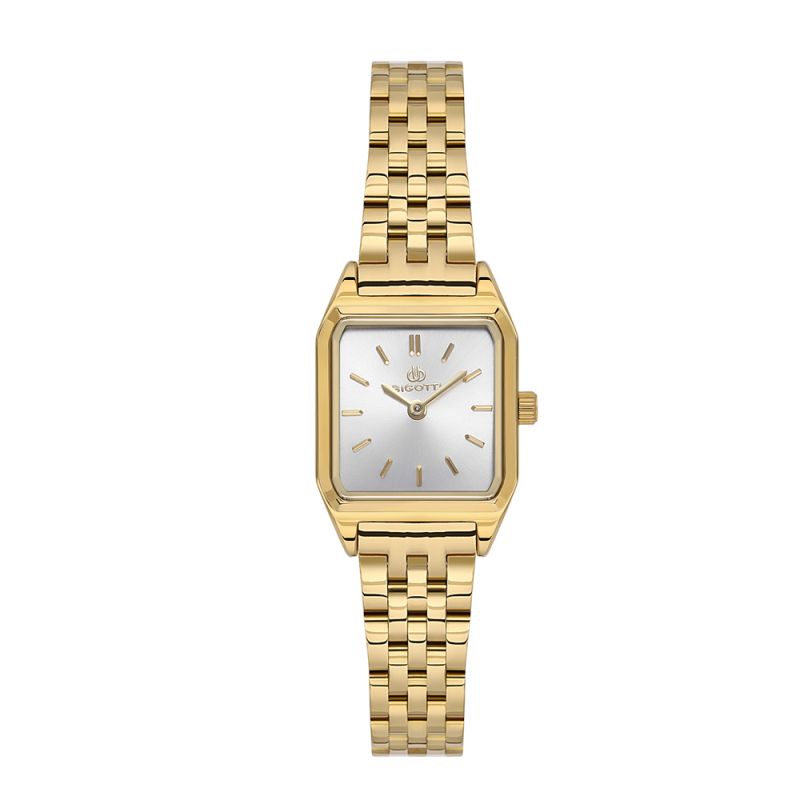 Класически модел дамски часовник Bigotti от колекцията Quotidiana. Сребрист аналогов дисплей със стрелки и индекси в цвят злато. Стъкло минерал-кристал. Корпус изработен от месинг. Верижка от неръждаема стомана. Часовникът се задвижва от кварцов механизъм с калибър VJ20C1. Водоустойчивост 3 ATM - допускат се леки пръски, не се препоръчва обилно мокрене.
