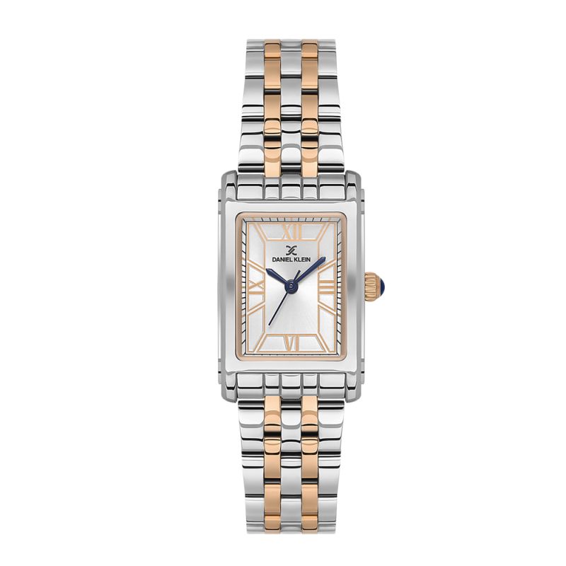 Дамски часовник Daniel Klein със стилен дизайн от колекцията Premium. Моделът е с метален корпус и верижка от неръждаема стомана. Стъкло минерал-кристал. Сребрист аналогов дисплей с детайли в цвят розово злато и сини стрелки. Задвижва се от кварцов механизъм VJ21C1. Водоустойчивост 3 ATM - допускат се леки пръски, не се препоръчва обилно мокрене.